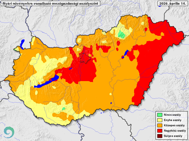 A talaj felső 20-30 cm-es rétege nagyon sokat száradt az elmúlt napokban. A felső 20 cm kritikusan szárazzá vált a Tiszántúlon, a középső országrészben, de az Alpokalján is. A 30-60 cm-es réteg jellemzően országszerte jó vízellátottságú, a mélyebb rétegekből pedig főként az Alföldön hiányzik 60-90 mm, ami a tél során nem töltődött föl.