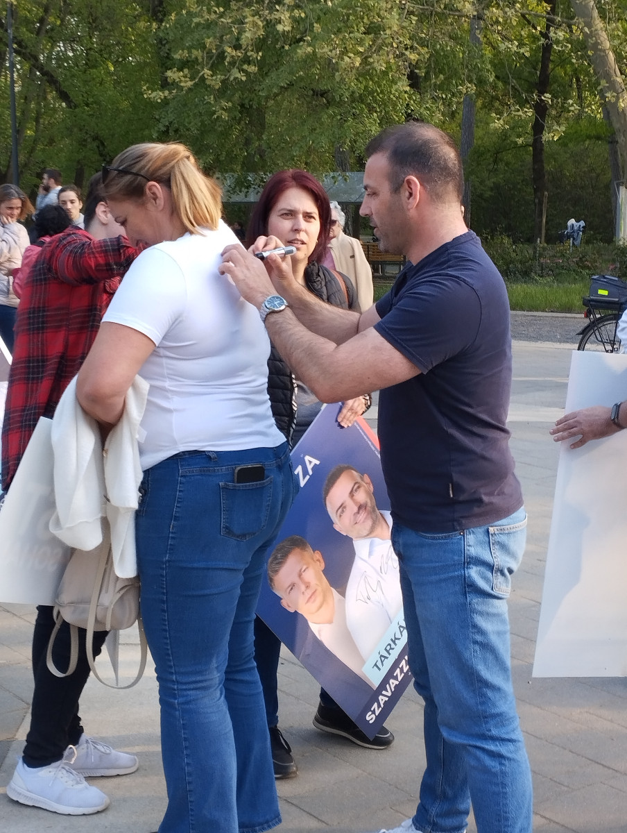 Óriási sor alakult ki Tompa Enikő és Tárkányi Zsolt pultjai előtt pénteken – a Tisza Párt megválasztott debreceni országgyűlési képviselői a Csapó utcán, illetve a Békás-tónál dedikálták plakátjaikat.
