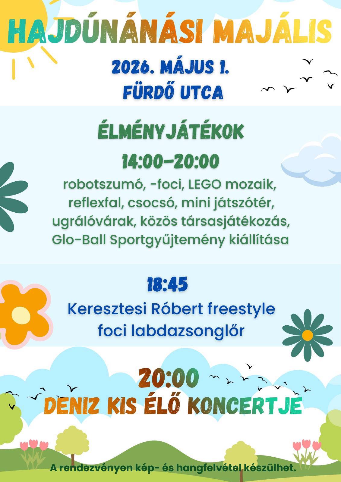Május 1-jén ismét közös ünneplésre hívják a helyieket és a környékbelieket Hajdúnánáson, ahol színes programkínálattal készülnek a szervezők. A rendezvény a Fürdő utcában várja az érdeklődőket 14:00 és 20:00 között, elsősorban családbarát eseményként.