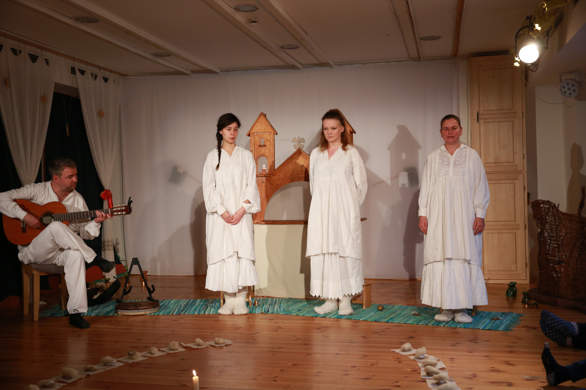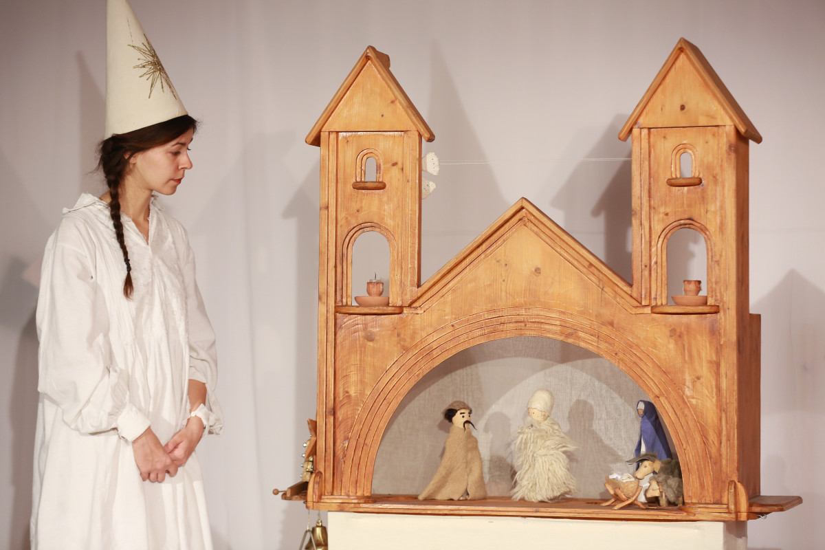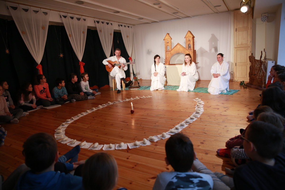 „Karácsony havában ünneplőbe öltözve, narancs- és fahéjillattal, énekekkel várunk Benneteket a Játszószínházban, hogy együtt készüljünk a Nap fordulójára. Mesélünk, ahogy népünk a régi időkben mondta, a Fénykrisztus születéséről. A betlehemi templomban megtáncoltatjuk a három pásztort, a gonosz Heródes királyt, és megidézzük a napkeleti bölcseket.” Az előadást 3 éves kortól ajánlják!