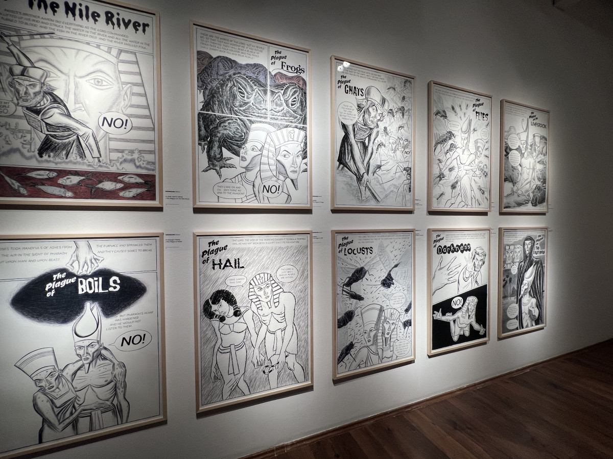 Vizi Kata, a MODEM ügyvezető igazgatója a tárlatot bemutató pénteki sajtóeseményen felidézte, hogy 12 művészt kért fel Kovács Levente műgyűjtő és Petrányi Zsolt kurátor arra, fogalmazzák meg kortárs nyelven azt, mit jelentenek nekik a mózesi történetek, illetve milyen viszonyuk lehet az embereknek ma az Ószövetség tanításaihoz.