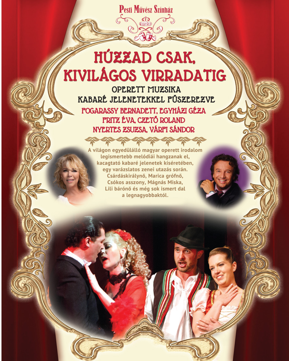 Különleges zenés-szórakoztató esttel érkezik Debrecenbe a Pesti Művész Színház társulata: a „Húzzad csak, kivilágos virradatig” című operett- és kabaréest két részben idézi meg a klasszikus magyar zenés színház aranykorát.