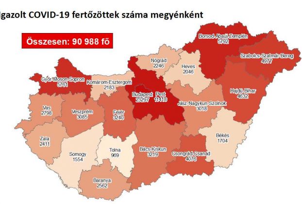 4219 újabb magyar állampolgárnál mutatták ki az új koronavírus-fertőzést (COVID-19), ezzel 90 988 főre nőtt a hazánkban beazonosított fertőzöttek száma. Elhunyt 90 többségében idős, krónikus beteg, így az elhunytak száma 2063 főre emelkedett, 21 232-en pedig már meggyógyultak. Az aktív fertőzöttek száma 67 693 fő. Az aktív fertőzöttek 25%-a, az elhunytak 31 %-a, a … Bővebben: Újabb rekord: 90-en haltak meg, 4200-zal emelkedett a fertőzöttek száma