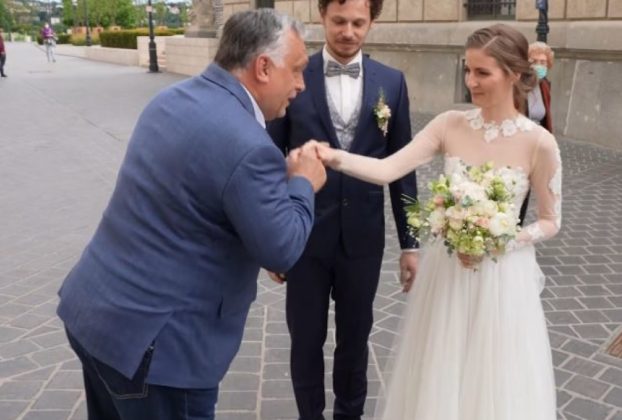 Pörköltszaftosan állt be Orbán fotózkodni egy ifjú pár mellé