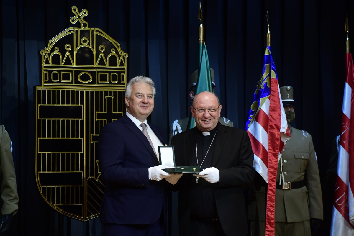 A kitüntetettek között van Palánki Ferenc, a Debrecen-Nyíregyházi Egyházmegye megyéspüspöke is (a képen), aki a Magyar Érdemrend középkeresztjét vehette ét.