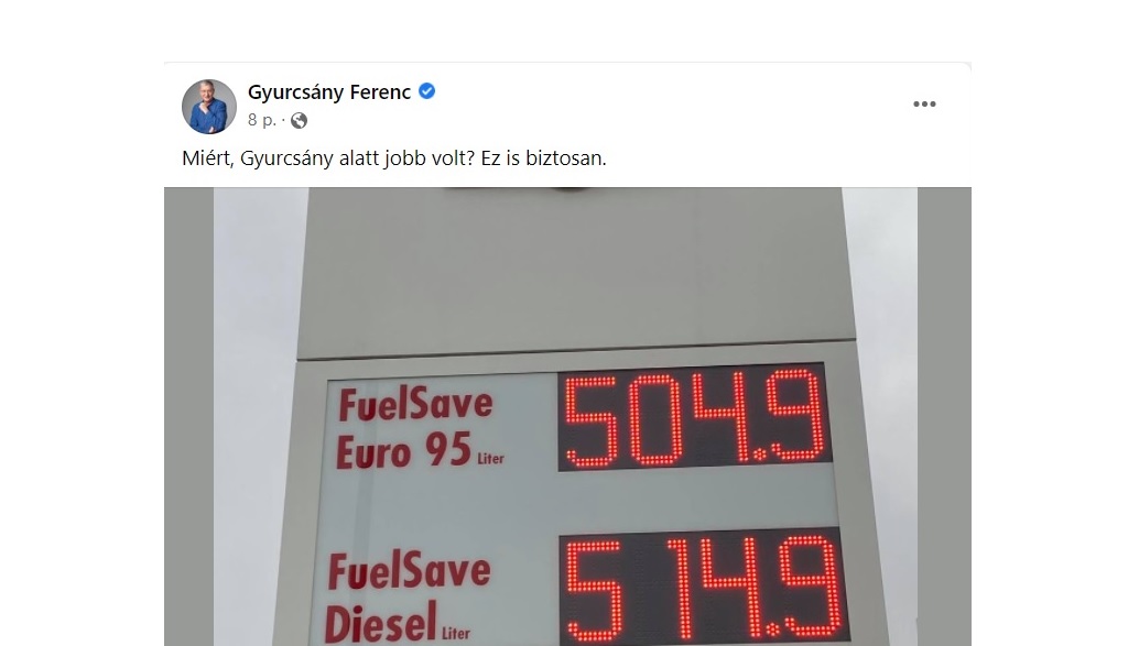 A Demokratikus Koalíció azt javasolja a Rogán Antal vezette Miniszterelnöki Kabinetirodának, hogy a benzinkutak tartsanak “Gyurcsány-napokat”, mert 2009-ben egy liter benzinért 257 forintot, egy liter gázolajért 252 forintot kellett fizetni.