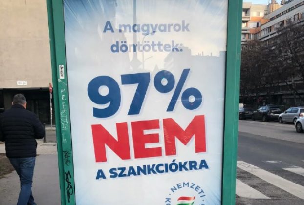 Óriásplakátokon hazudozik a kormány: “A magyarok 97 százaléka mondott nemet a szankciókra”