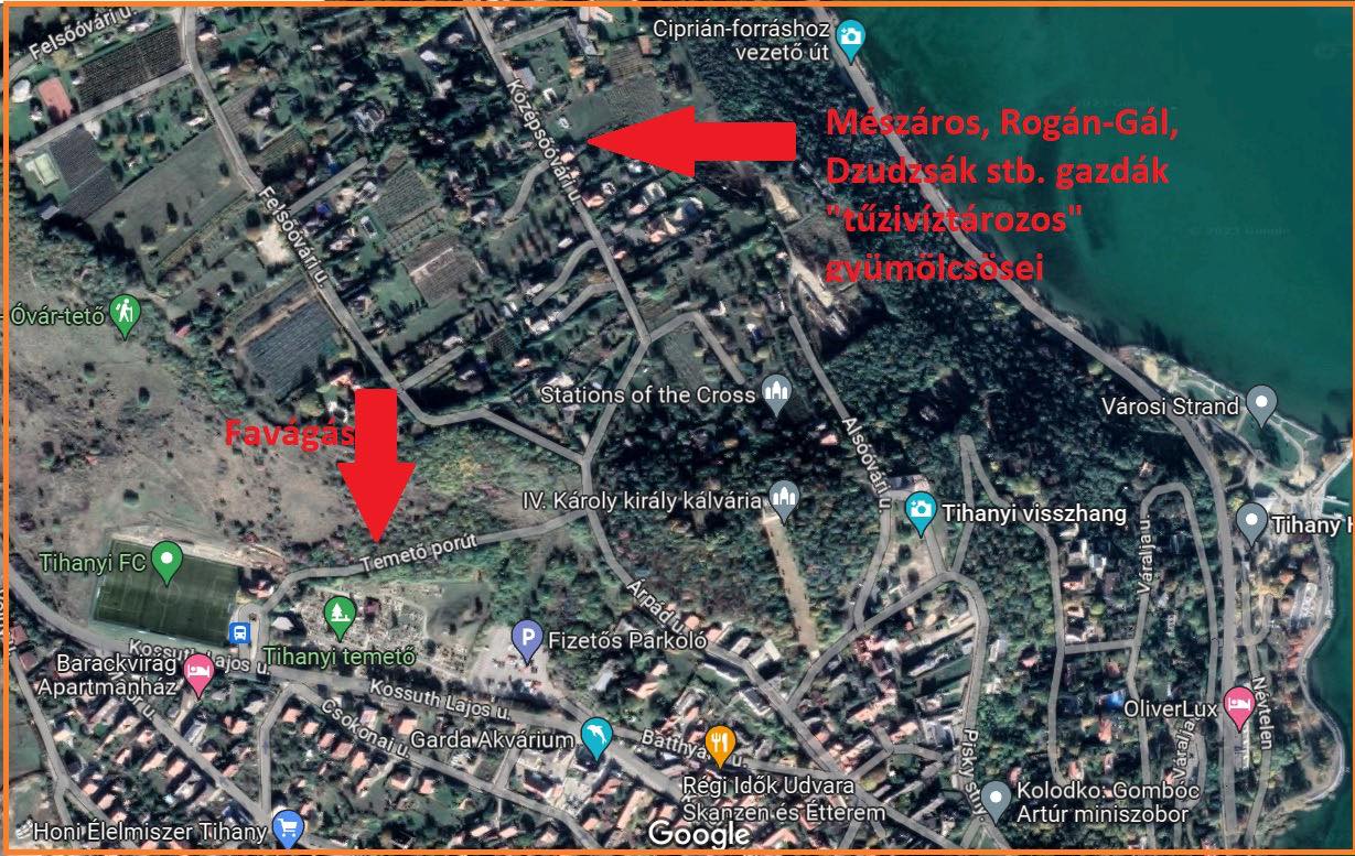Hogy milyen “tűzivíztározós” “présházak” megközelítését könnyíti meg a favágás, arról az Átlátszó korábbi cikkében láthat képeket. A lap nemrég írt arról, hogy van 3 utca Tihany tetején, ahol a legkisebb az egy főre eső lakónévtáblák, és a legmagasabb az egy főre eső luxusmedencék száma. A külterületi, mezőgazdasági besorolású területeken ritkán találni a tihanyihoz hasonló minőségű mezőgazdasági épületeket. Az utóbbi évek sajtóhíreiből pontosan lehet tudni, hogyan