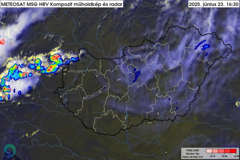 A front már megérkezett hazánk közelébe, az Alpok térségében pedig egyre több zápor és zivatar alakul ki. Már a magyarországi területeken is észleltünk villámtevékenységet – jelentette a Hungaromet, mellékelve az aktuális radarképet.