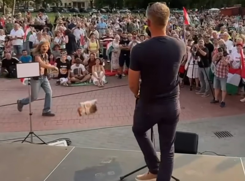 Az illető később maga kommentált Magyar Péter Facebook-bejegyzése alá, és pontosította, mit dobott a színpadra: