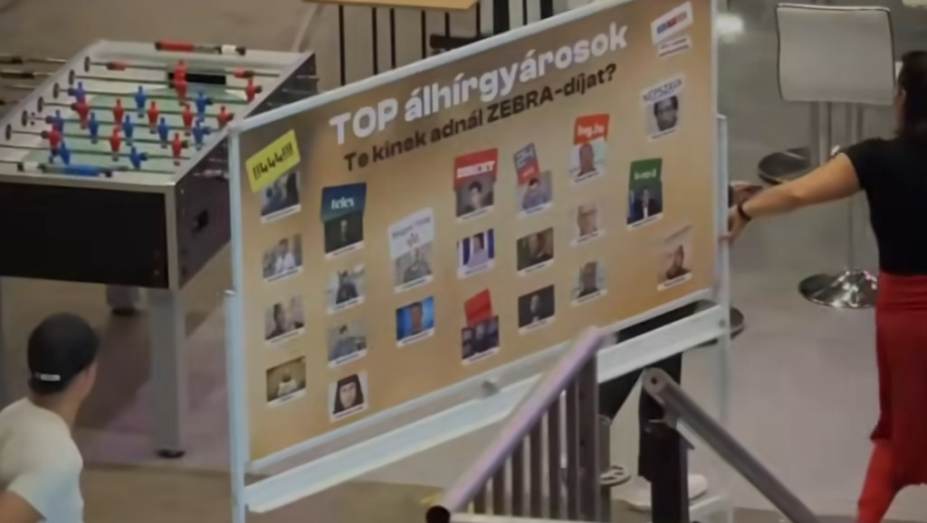 A videó 14. másodpercében tűnik fel egy tábla, amelyen a „Top álhírgyárosok” és a „Kinek adnál Zebra-díjat?” felirat olvasható. A táblán lapok szerint csoportosítva, fotóval és névvel sorolják fel a független médiumok – köztük a 444, a Telex, a Magyar Hang, a 24.hu, a Népszava, az RTL és a Partizán – újságíróit.