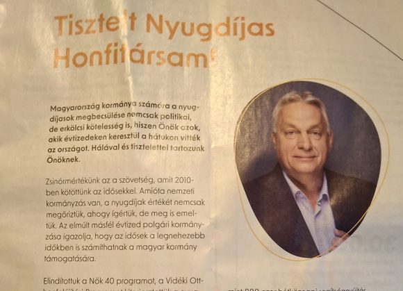 A propagandakiadvány erősen indít. Ki más szólna elsőként a potenciális Fidesz-szavazókhoz, mint maga a nagy Orbán Viktor. Doktor Miniszterelnök Úr köszöntőjében lelkesen sorolja, mi mindenért lehet neki hálás egy magyar nyugdíjas.