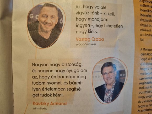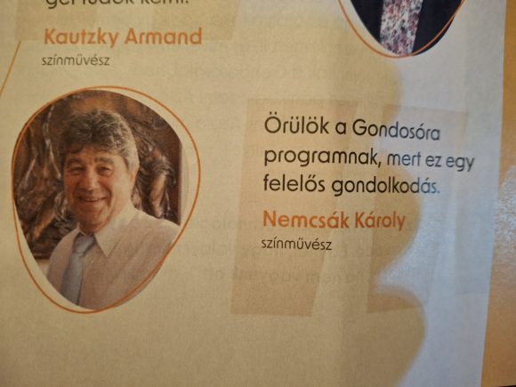 A lapban olvasható egy páros interjú Csepregi Évával és Sasvári Sándorral. Mindketten hangsúlyozzák – illeszkedve a Fidesz által kisajátított narratívához – hogy számukra mennyira fontos a család. Mondjuk, vagyunk még ezzel így néhány millióan a magyarság kevésbé értékes – értsd: nem fideszes – bugyraiból.