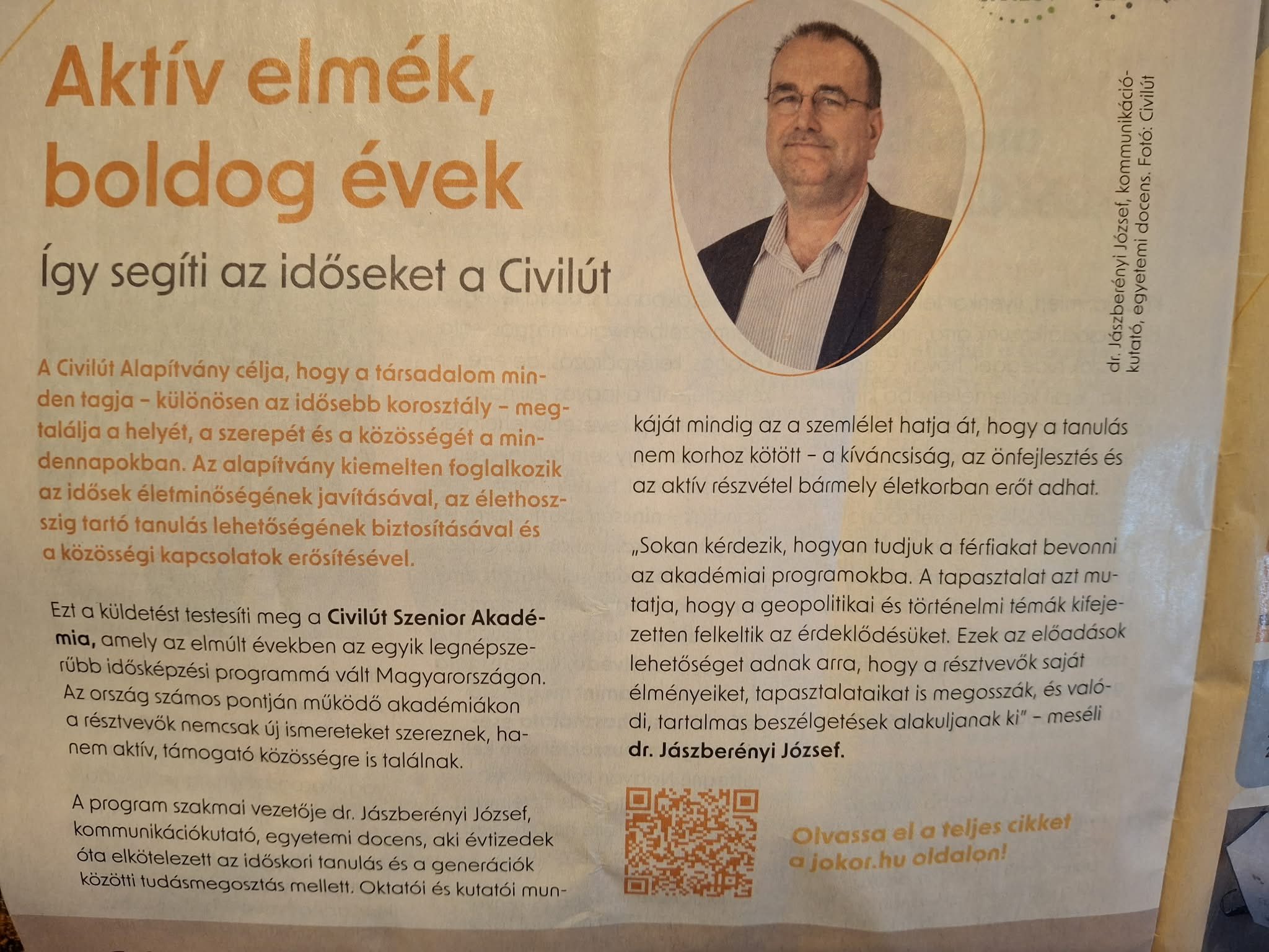 S hogy a focirajongó nagypapák számára is legyen azonosulható karakter, a lap utolsó korteskedője dr. Jászberényi József irodalomtörténész, kultúrtörténész, geronto-andragógiai kutató is megszólal.