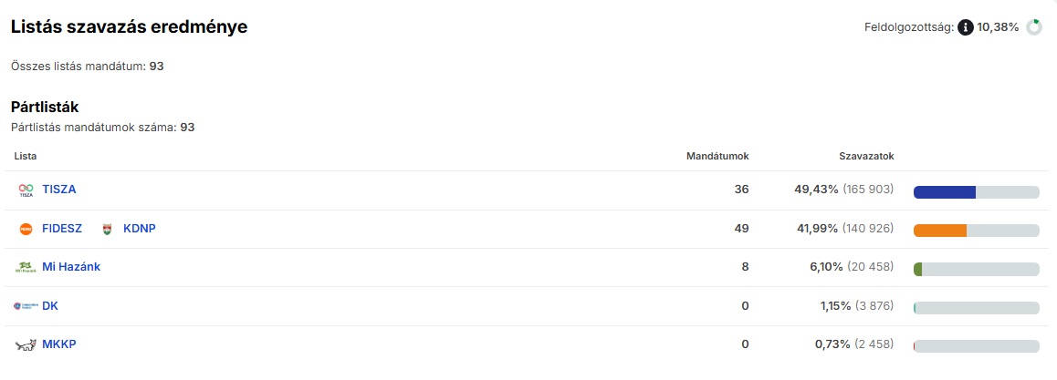 Mint megszokhattunk, az első eredmények a kistelepülésekről érkeznek, ahol a Fidesz erősebb. Így még komolyabb előnyre számíthat egy leendő Tisza-kormány.