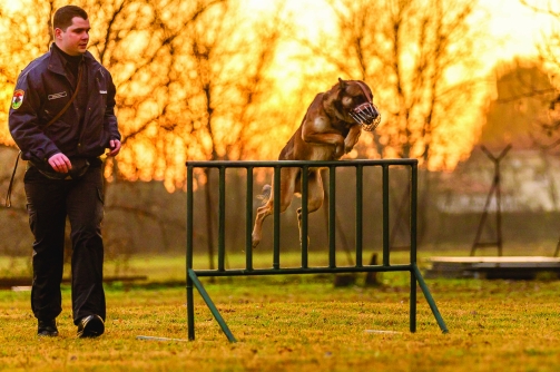 A Hajdú-Bihar megyei rendőrkapitányságokról érkeztek a kutyavezetők szolgálati ebeikkel Debrecenbe egy kis tréningre. Az még hagyján, hogy a kutyák és vezetőik alakzatba rendeződtek, az sem nagy dolog, hogy az ebek parancsszóra ülve, fekve maradtak, amíg vezetőjük távolabb ment. A java csak azután kezdődött, amikor megérkeztek a rosszfiúkat megjelenítő segítők. Ők lettek a leküzdendő ellenség: a rendőrkutyákban írmagja sem maradt a barátságosságnak. A kutyás zsaruk felálltak egymással szemben két sorban. A vezetőknek nem csekély erőfeszítésükbe került visszafogni az ebeket, amelyeknek az volt a feladatuk, hogy elkapják a két sor között végigmenő „csibészt”. A segítőnek így sorozatban kellett átélnie a megpróbáltatásokat, igaz, mindezt védőruhában és sisakban tehette. Ezután a segítők a sorban álló ebek elé léptek, hergelték őket, majd megfordultak, és futottak, egészen addig, amíg a vezényszóval indított kutya utol nem érte őket. A hab a tortán a nagyerdei stadionnál tartott gyakorlat volt: a kutyás rendőr szemmel tartotta az igazoltatott futballhuligánokat, és aki ellenállt, azt rendőrkutyával fegyelmezte.