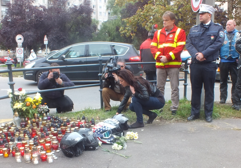 A meghalt motorosokat egy-egy bukósisak jelképezte, amelyek elé a megemlékezők virágot helyeztek és gyertyákat gyújtottak. Az elhunytak emlékére szóltak a szirénák.