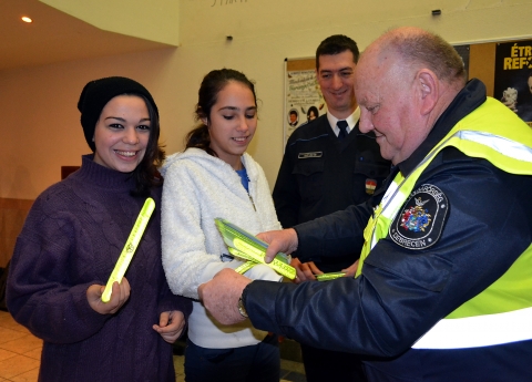 A debreceni rendőrök láthatósági eszközöket ajándékoztak a rendezvényen megjelent gyermekek részére.