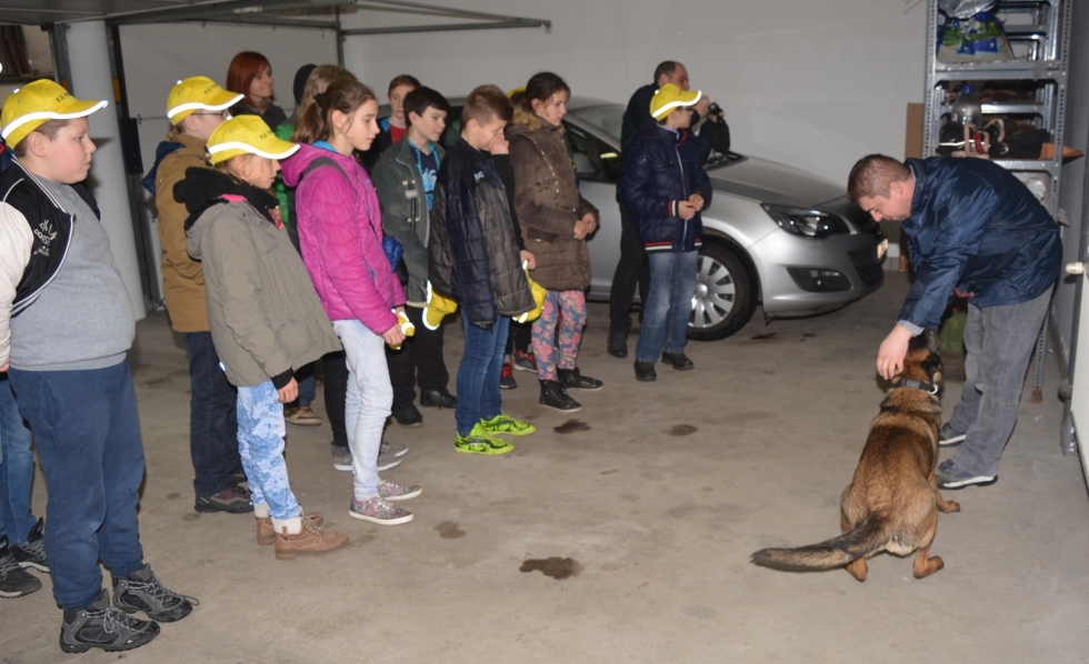 A diákok kipróbálhatták a kényszerítő eszközöket: a rendőrbotot, pajzsot, valamint a testpáncélt, amit a vállalkozó szelleműek magukra is ölthettek, a rohamsisakkal együtt, majd megtekintették a nyilvántartásba vételi helyiséget, ahol a bűnügyi technikusok fényképfelvételeket készítenek és ujjlenyomatot vesznek a gyanúsítottaktól. Ezután az előállító helyiség következett, majd a gyerekek beülhettek egy igazi rendőrautóba. A nap fénypontja Rihanna, az 1 éves belga juhász szolgálati kutya bemutatója volt. Az eb kiképzése jelenleg is tart és ha az befejeződik, igazi nyomkövető kutya válhat belőle. A szolgálati eb bemutatót tartott tudásából kutyavezetőjével Lőrincz Gyula c. r. zászlóssal, ami nagy sikert aratott.