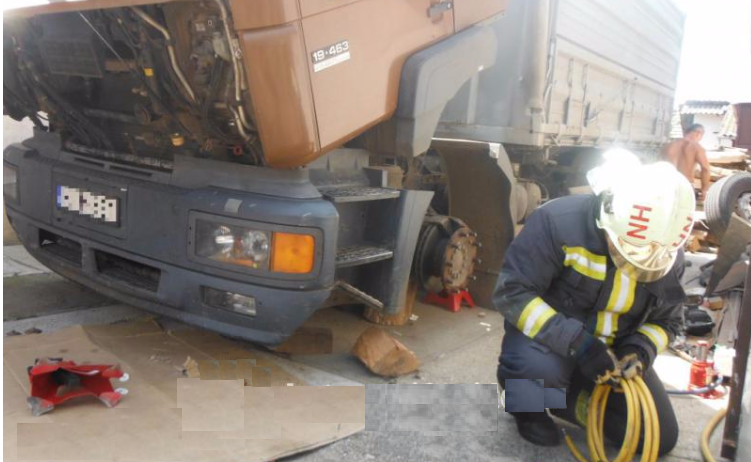 Teherautó esett egy emberre hétfő délután Hajdúböszörményben, a Kölcsey Ferenc utcában. A helyi hivatásos tűzoltók, a megyei műveleti szolgálat irányítása mellett, két pneumatikus emelőpárna segítségével szabadították ki, a jármű alá szorult személyt, aki később belehalt sérüléseibe.