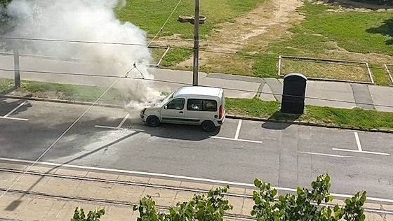 Kigyulladt egy autó a Petőfi téren