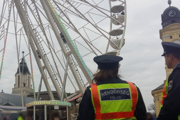 A rendőrök szabálysértési eljárást indítottak a két fiatalkorúval szemben.Egy közterület-felügyelő tett bejelentést a rendőrségre 2017. december 4-én 17 óra körül arról, hogy Debrecen, Kossuth téren két fiatal a karácsonyi vásár területén felállított óriáskerékre felült és azon másokat megbotránkoztató módon viselkedtek, trágár szavakat kiabáltak.