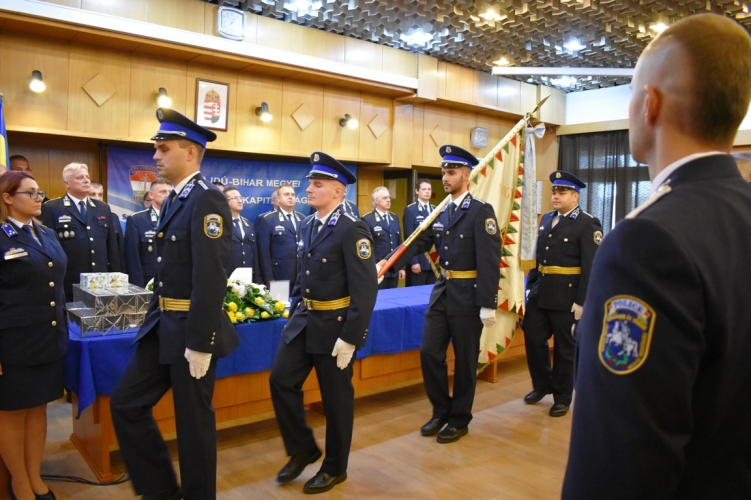 Nemzeti Ünnepünk alkalmából szolgálati feladataik kiemelkedő teljesítéséért a Hajdú-Bihar Megyei Rendőr-főkapitányság vezetője soron kívül előléptette 10 kollégáját és elismerésben részesítette 49 munkatársát, valamint 22 kerek évfordulós születésnapjukat ünneplő, jelenlegi és volt munkatárs az ünnepségen emléktárgyat vehetett át.
