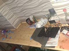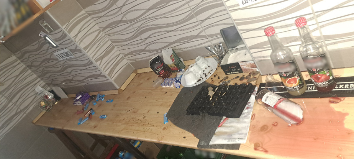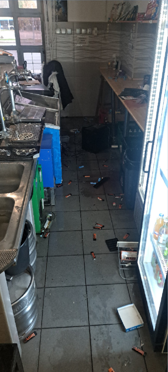 Miután úgy ítélte meg, hogy kellő rombolást végzett és az alkoholos italokat már nem érezte erejéhez méltó ellenfélnek, haragját a berendezési tárgyak sínylették meg. Ezután egy kávéfőzőgép, a kassza és két távirányító is áldozatul esett a férfi dühének, aki így közel 600 ezer forint kárt okozott.