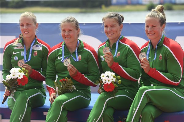 A magyar versenyzők négy érmet: egy aranyat, két ezüstöt és egy bronzot gyűjtöttek a belgrádi kajak-kenu Európa-bajnokság szombati 500 és 1000 méteres döntőiben.