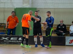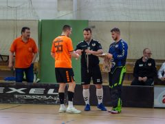 A mérkőzés búcsúztatással indult: utolsó mérkőzése volt ez Füzesi Csabának, akiktől a társak meglepetéssel köszöntek el. Az ünnepi hangulat a mérkőzésen is folytatódott: agilisen kezdett a hazai csapat, már az első percben több védést kellett bemutatnia a vendégek kapusának, Szuri Zoltánnak. A hazai fölényt Végh Ádám váltotta gólra, majd Pál Lóránt találatával már 2:0-t mutatott a tábla. A 11. percben Németh Richárd góljával szépítettek a vendégek, ám Végh Ádám újabb találatával ismét kettő volt közte (3:1). A játékrész közepére a vendégek is megérkeztek a meccsbe: Ignéczi Balázs majd Pirik Dávid góljaival egál lett, majd szünet előtt az első emberelőnyt góllal használták ki a vendégek: Németh Richárd góljával a vendégek kerültek előnybe (3:4).