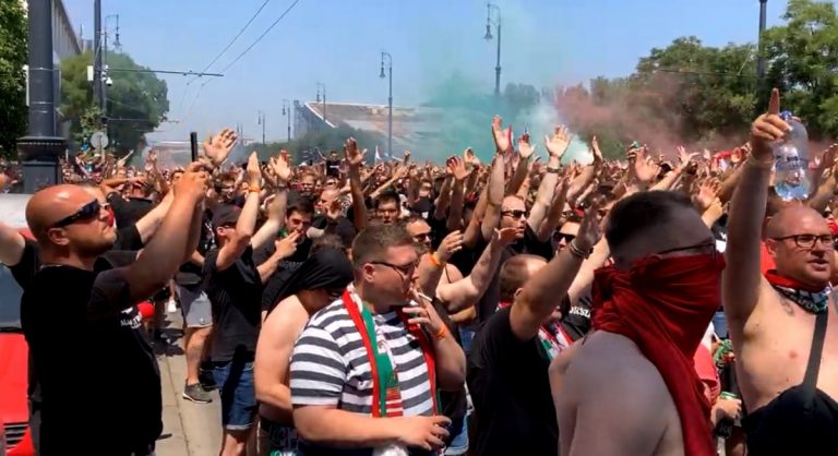 “Ria, ria, Hungária”, “szar Szlovákia” – így vonultak a magyar szurkolók a franciák elleni meccsre