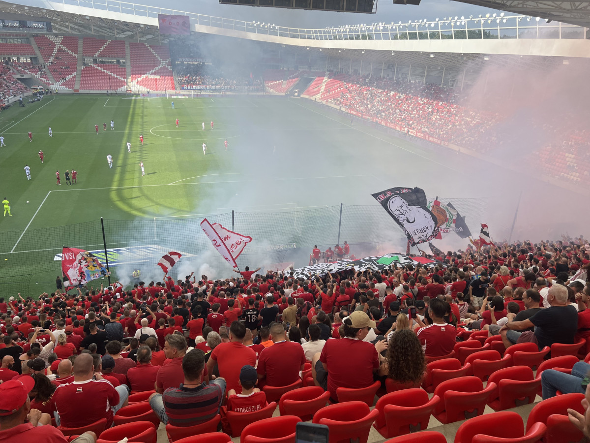 Sokan váltottak jegyet, köztük sok „divatszurkoló” is, akik közül többen azt sem tudták, hogyan kell használni a beléptető kaput. Aki pedig a sörfesztiválról érkezett vagy épp csak „kicentizte” az időt, az lemaradt a kezdésről. A sípot egyébként a tavasszal botrányosan tevékenykedő Bognár Tamás fújta. Nekem személy szerint sikerült beérni kezdésre, a stadionban pedig fergeteges volt a hangulat – zászlóerdők és rigmusok kíséretében.