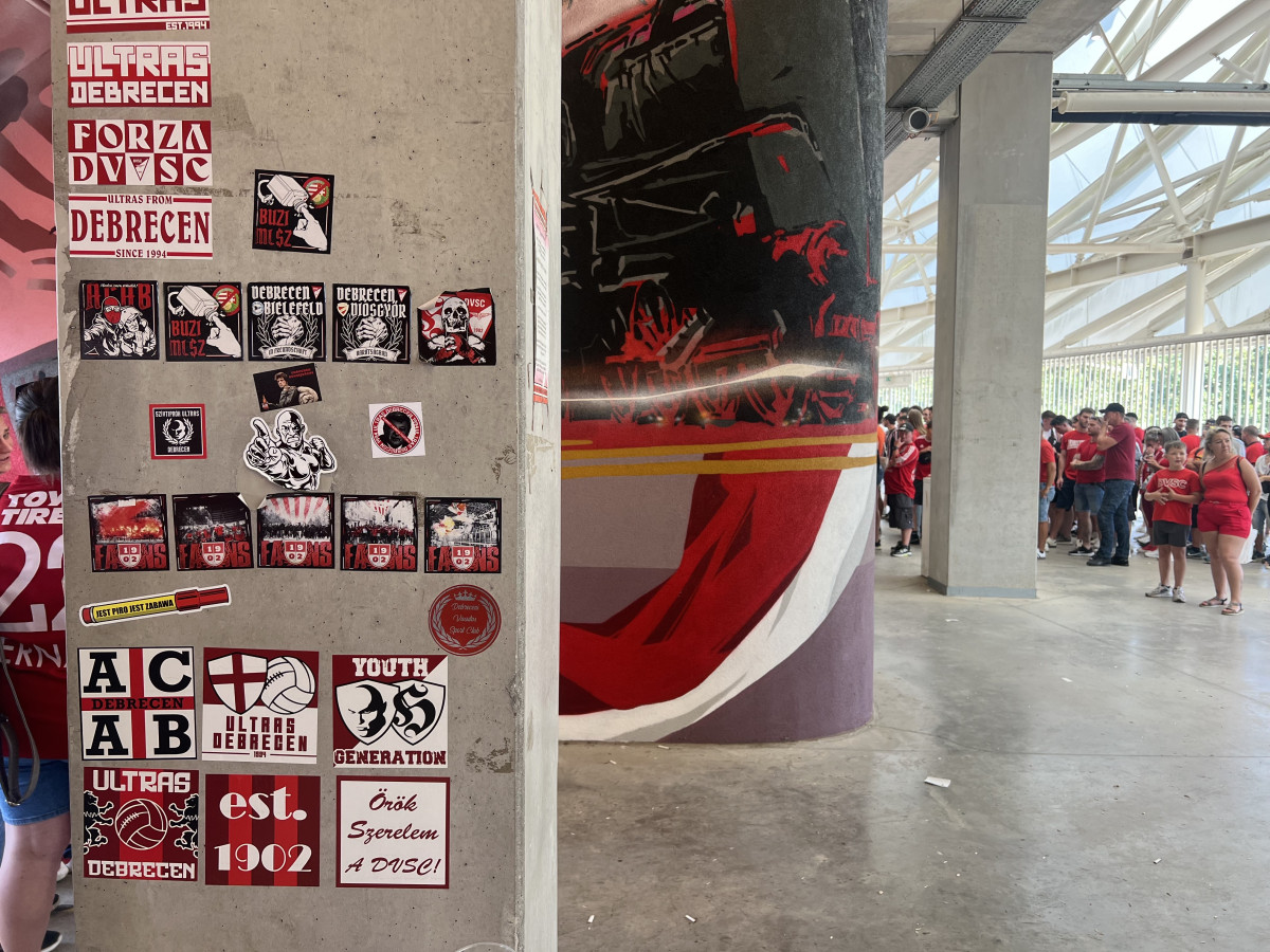 Vasárnap reggel még néhány esőfelhő áztatta Debrecent és környékét, de mire kiértem a Víztoronyhoz, a MatchDay Fesztivál helyszínére, tökéletes futballidő lett. A hangulat is kiváló volt: debreceniek és diósgyőriek együtt söröztek, a gyerekek pedig ügyességi játékokkal szórakoztak. A sör verhetetlen áron – 590 forintért – volt kapható, a Loki-burger pedig 1000 forintos árával szinte ajándéknak tűnt, különösen, hogy még ízletes is volt. Innen indultunk a stadion felé, ahol már sejteni lehetett, hogy gond lesz a beléptetéssel.