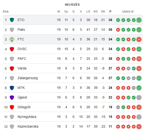 Az NB I állása: