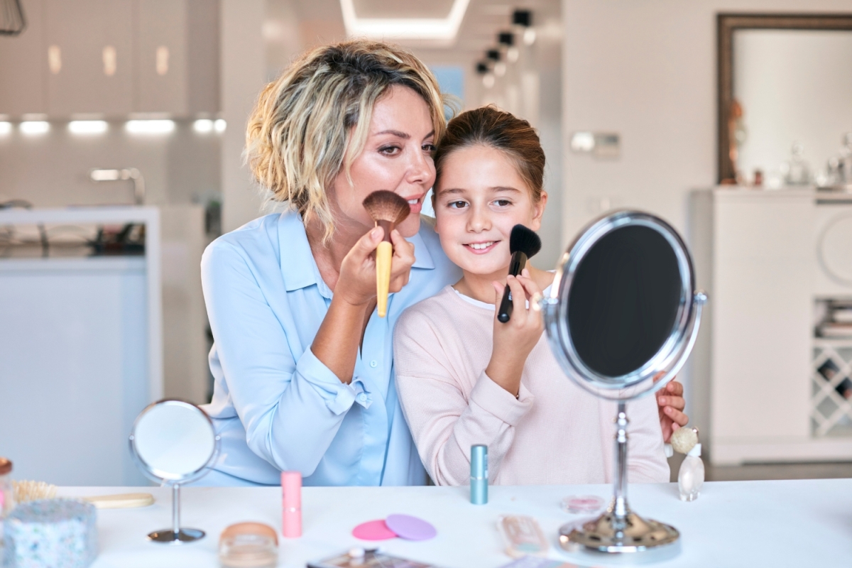 A kislányok számára különösen fontos élmény, amikor „nagylányként” készülődhetnek anyával. Egy saját, gyerekeknek készült illat vagy akár néhány gyereksmink is segít abban, hogy részesei legyenek a közös rituálénak, miközben elkezdik megtanulni hogyan kell ezeket használni. (x)