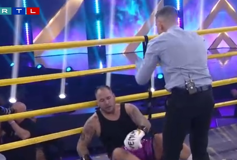 Az első menet ennélfogva cseppet sem technikás, de a maga módján szikrázó küzdelmet hozott. Curtis a második menetben már nemcsak sokat fogott és birkózott, hanem olykor egyszerűen elsétált, hogy levegőhöz jusson. Végül Fecsó kivárta azt a pillanatot, amikor ellenfelét már nem vitte a lendület, és a padlóra küldte, ahonnan a Voice coacha már nem is tudott feltápászkodni, leginkább a fáradtság miatt, így a bíró beszüntette a küzdelmet.