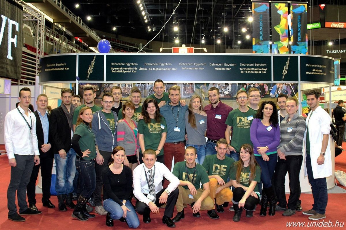 A Debreceni Egyetem ebben az évben 36 m2-es önálló „sziget” standon mutatja be 14 karának felvételi kínálatát. A 30 fős stáb – jórészt a Hallgatói Önkormányzat képviselői – az érdeklődők valamennyi kérdésére válaszolnak, ismertetve az intézmény oktatási, képzési, kulturális, kollégiumi és szabadidős lehetőségeit.