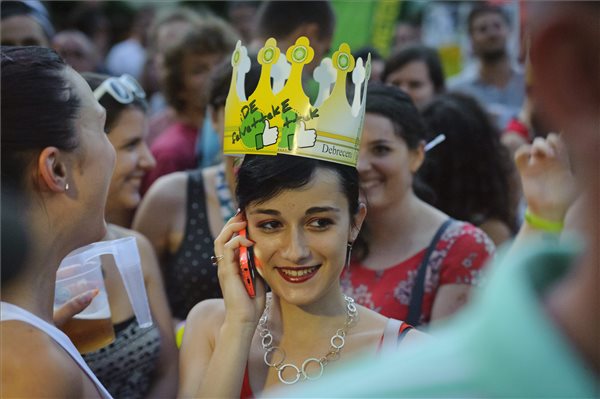 Érdeklődők a Pont Ott Parti hivatalos ponthatárváró rendezvényen a debreceni Campus Fesztiválon 2015. július 23-án. Ezen a napon este 20 órakor nyilvánosságra hozták a szeptemberben induló felsőoktatási képzések ponthatárait. MTI Fotó: Czeglédi Zsolt
