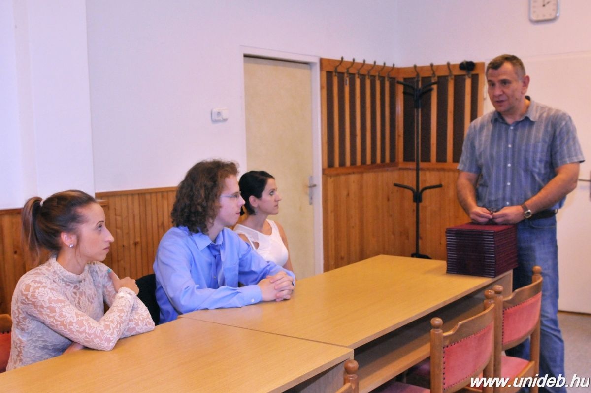 A kiemelkedő tanulmányi eredmény mellett a kimagasló szakmai munka is feltétele annak, hogy valaki köztársasági ösztöndíjban részesüljön. A 2015/2016-os tanévben a Debreceni Egyetem 120 hallgatója kap köztársasági ösztöndíjat. A Természettudományi és Technológiai Kar diákjai közül húszan nyerték el az ösztöndíjat, melyet Pintér Ákos dékán adott át szeptember 23-án, szerdán a kar dékáni hivatalának tanácstermében.