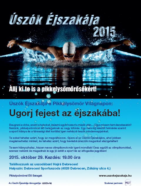 Idén is a Debreceni Sportuszoda ad otthont az Úszók éjszakája programnak, ahol a leggyakoribb bőrbetegségre hívják fel a figyelmet.
