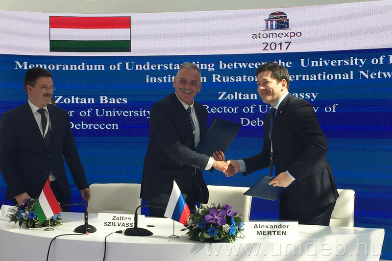 A IX. Nemzetközi Atomexpo Fórumon, 2017. június 19-én Moszkvában írták alá a dokumentumot a Roszatom nemzetközi-regionális szervezete és az egyetem vezetői. A Rusatom Nemzetközi Hálózat részéről a dokumentumot Alekszandr Merten, a vállalat elnöke, magyar részről pedig a Debreceni Egyetem rektora, Szilvássy Zoltán és Bács Zoltán, az intézmény kancellárja látta el kézjegyével.
