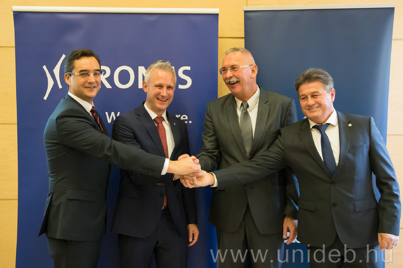– A Debreceni Egyetem strukturális változásokat indított a mérnökképzés fejlesztése érdekében: ágazati kabinetet hoztunk létre és megalapítottuk a Villamosmérnöki Intézetet. Ennek köszönhetően rendkívül gyors fejlődésnek indult a vegyész-, a villamos- és gépészmérnök-képzésünk. Emellett a Bölcsészettudományi Kar Germanisztikai Intézetének kulturális kapcsolatrendszere is bizonyíték lehet a Krones AG számára arra, hogy milyen nagymértékű a fogékonyság a német gondolkodás és kultúra iránt – tette hozzá Szilvássy Zoltán rektor.
