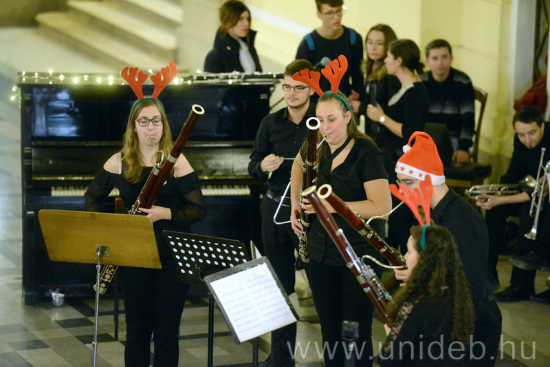 Mikulás-ünnepséggel egybekötött zenés hangszerbemutatót tartott kedden a Zeneművészeti Kar az Egyetemi Könyvtár „Lélekmelengető” koncertsorozatában a Főépület Díszudvarán.