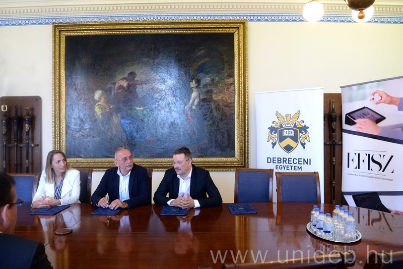A Debreceni Egyetem (DE) stratégiai partnerként részt vesz az elektronikus fizetési stratégia megalkotásában, az innovatív fizetési megoldások terjesztésében – erről az intézmény vezetői csütörtökön írtak alá együttműködési megállapodást az Elektronikus Fizetési Szolgáltatók Szövetsége (EFISZ) vezetőivel.