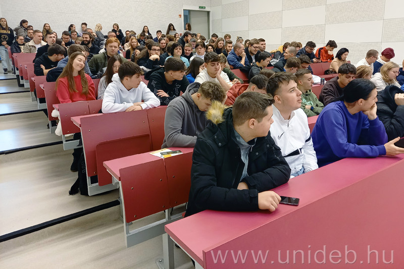 Miközben a Debreceni Egyetem Műszaki Karának (DE MK) Aulájában hatalmas tömeg volt kíváncsi a tanszékek bemutatóira, játékos vetélkedőire, az egyik zsúfolásig telt teremben a kar oktatási dékánhelyettese tartott az elérhető képzésekről előadást.