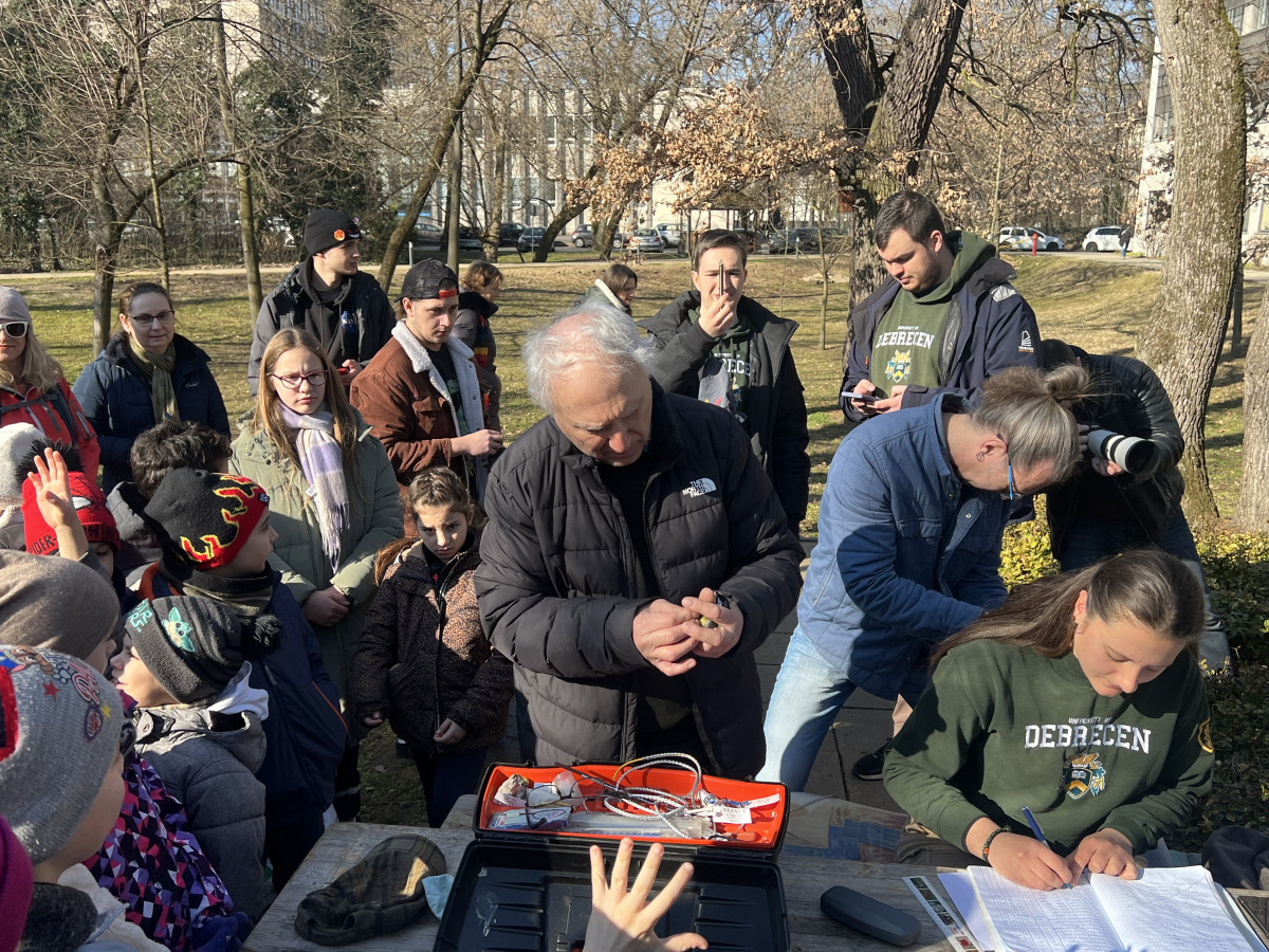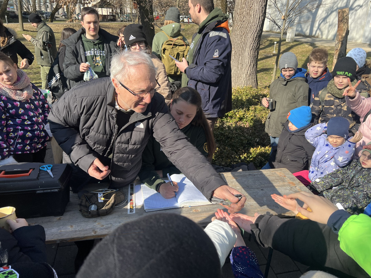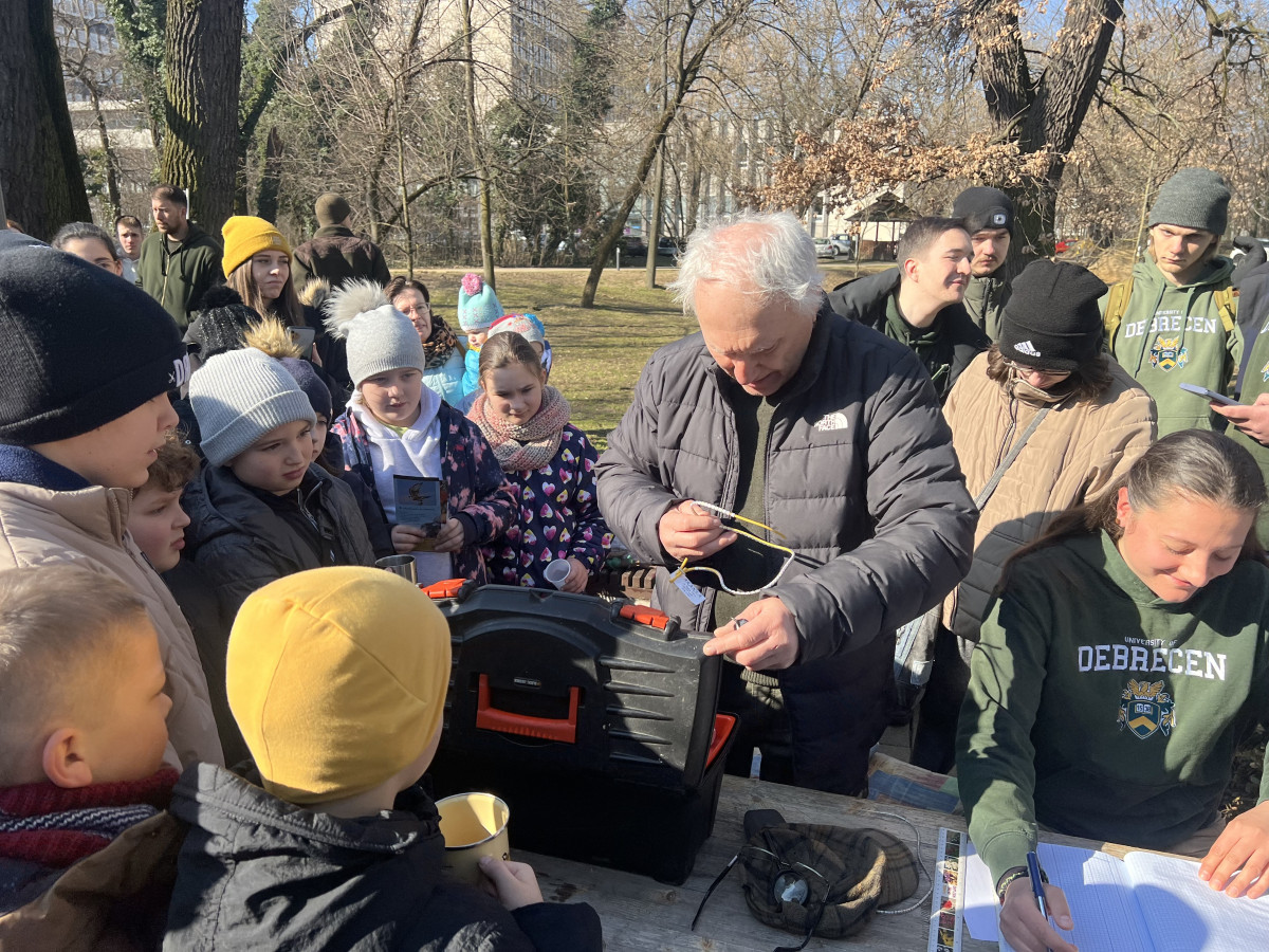 A Debreceni Egyetemen tartott, több mint tíz éves múltra visszatekintő madárgyűrűzésre több óvodás és iskolás csoport is érkezett. A gyerekek a Magyar Madártani és Természetvédelmi Egyesület, a Hortobágyi Nemzeti Park Igazgatóság, a Természettár és az E-misszió Természet- és Környezetvédelmi Egyesület szakembereinek jóvoltából további hasznos és érdekes tudással gazdagodhattak, játékos formában ismerkedhettek a környezettel, az élővilággal.
