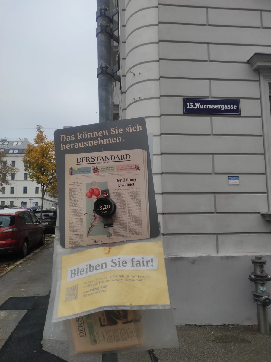Évtizedek óta bevett gyakorlat Bécsben, hogy a napilapok hétvégi számait az utcákon elhelyezett tasakokból lehet kivenni és az azokon elhelyezett kis pénzgyűjtő dobozba kifizetni. Érdekes módon a dobozkák mérete nem változott az évek alatt, miközben az újságok ára emelkedett és így több pénznek is kellene itt elférni.