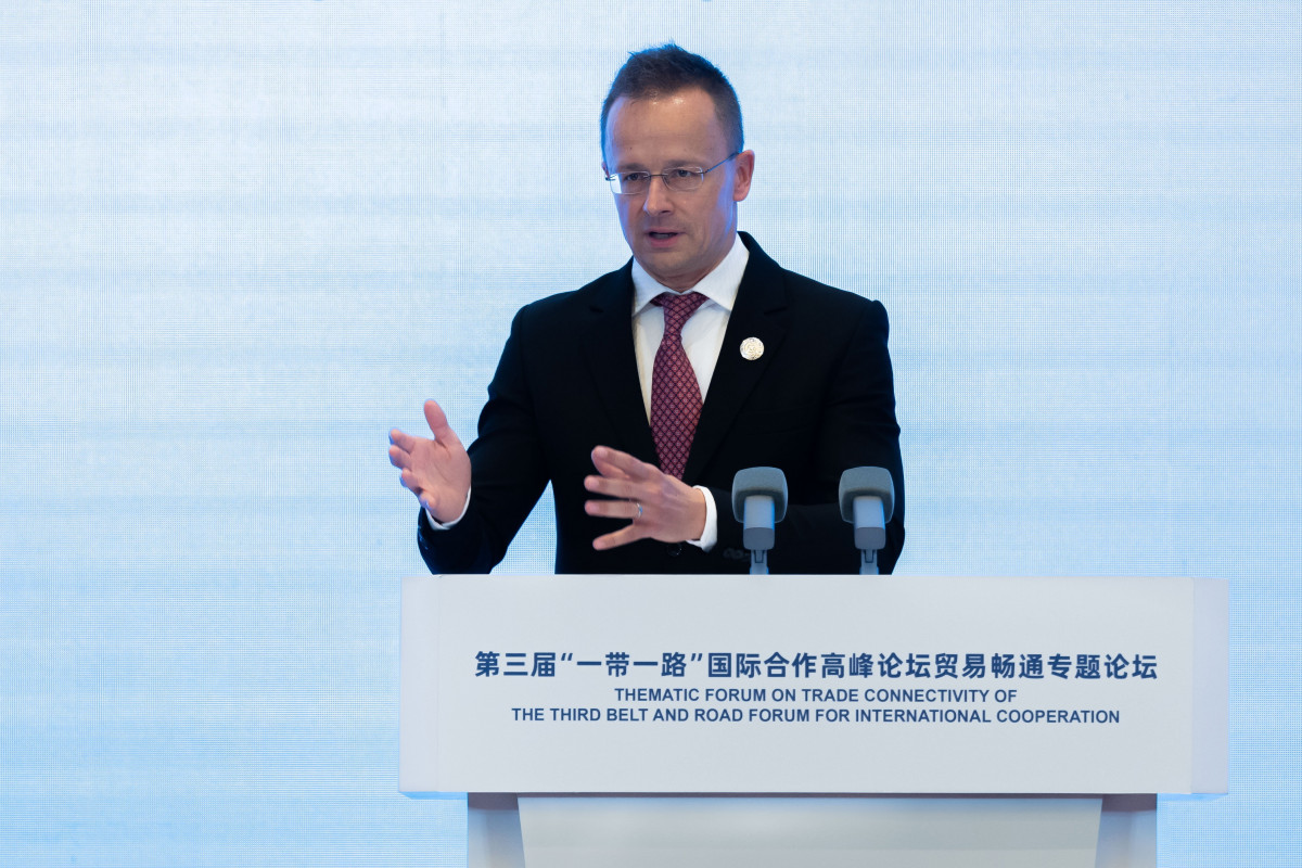A minisztérium közleménye szerint a tárcavezető az Egy övezet, egy út kezdeményezés nemzetközi fórumán arról számolt be, hogy a Kelet és Nyugat közötti, kölcsönösen előnyös együttműködésre Magyarország a legjobb példa, amely óriási erőfeszítéseket tett azért, hogy a beruházások fontos találkozási pontjává váljon mindkét irányból.