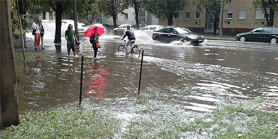 A gyalogosok a Libakertben és az Újkert egyes részein lábszárközépig érő vízben gázoltak, a kerékpárral közlekedőknek pedig tengelyig érő vízzel kellett megküzdeniük.