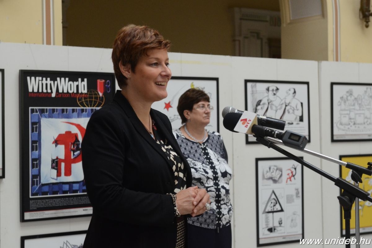 – A karikatúrák elgondolkodtatják nézőiket, nem csupán 1989-ről, hanem az egész hátrahagyott korszakról szólnak, több évtized tanulságai vannak egy-egy alkotásban – ajánlotta a kiállítást Papp Klára, a Bölcsészettudományi Kar dékánja, aki azt is felidézte, hogy 1989-ben még kevesen voltak, akik tudták, hogy mi következik majd a rendszerváltás után.